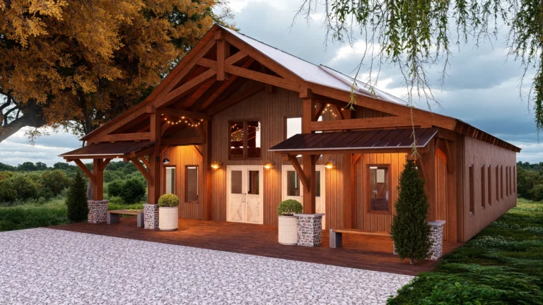 Built using your choice of premium timber species, this beautiful timber frame barn is perfect for family gatherings, serves as an elegant event space and wedding venue, and can be easily adapted for other special purposes. Available in customizable sizes ranging from 10ft x 10ft up to 50ft x 50ft, this barn can be tailored to fit your specific needs and property requirements.
