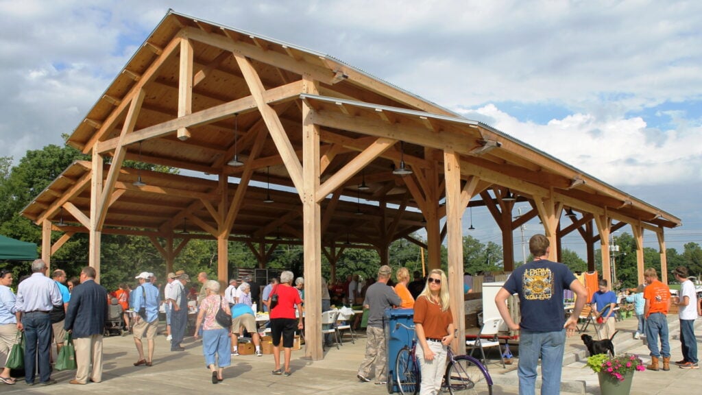Homestead Timber Frames built a Farmers Market for the City of Dresden. Homestead Timber Frames sent us detailed updates and pictures every week of the construction phase in-house. They were very detailed in the expectations from us. Once on-site, the crew was very professional and experienced in their work. We could not be happier with the finished product. I recommend Homestead Timber Frames to anyone looking for quality craftsmanship, personal attention, and a great working relationship.