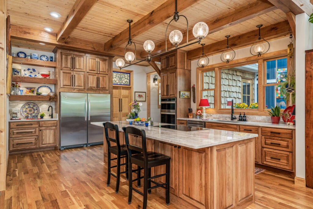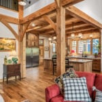 This lavish lakeside heavy timber frame home is located on a lake in the Fairfield Glade community of Crossville, Tennessee. Contractor Josh Baldwin worked with the Homestead Timber Frame family in 2021 to build this home, which has a White Oak interior and a Bald Cypress exterior. This is just one of the many examples of custom designed timber frame houses that we can build to fulfill your dreams.