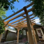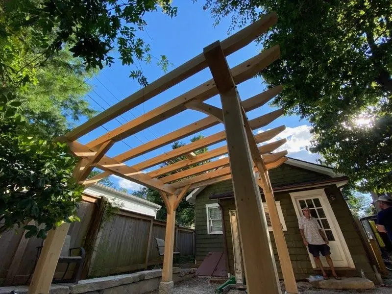 Built with traditional mortise and tenon joinery and your choice of premium timber species, this beautiful timber frame pergola is perfect for creating inviting outdoor living spaces, provides elegant shade for patios and gardens, and can be easily adapted to complement any landscape design. Available in customizable sizes starting at 8ftx8ft, this pergola can be tailored to fit your specific needs and property requirements.
